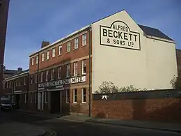 The building is constructed from red brick, partly rendered with ashlars dressing with a slate roof. It is a series of four ranges of two- and three-storey buildings making a square with an inner courtyard. The northern range of buildings fronts onto the River Don and consists of seven blocks of three storey apartments. These are newly built and replace the original single-storey building which was demolished in the 1990s refurbishment. The old cart entrance has been adapted to allow vehicles access to the inner courtyard where there is parking. The restored building has retained some of the original signage from the days of Alfred Beckett & Sons.[3][8]