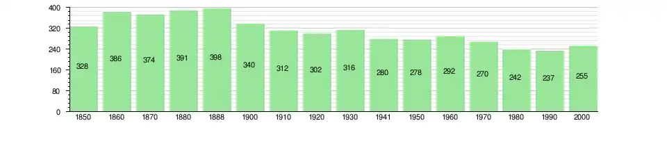 Brot-Plamboz has a population (as of December 2020) of 290.[8] As of 2008, 2.7% of the population are resident foreign nationals.[9] Over the last 10 years (2000–2010 ) the population has changed at a rate of -0.8%. It has changed at a rate of -6.6% due to migration and at a rate of 5.1% due to births and deaths.[10]