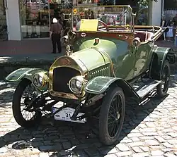 During the early part of the war, between 1914 and 1915, Buchet were delivering chassis to the Hollingdrake Automobile Company in Stockport, England. Each included a four-cylinder 10HP side-valve engine and a transmission.[2] Hollingdrake mounted their own bodies - mostly open two-seaters and coupés - and sold the Anglo-French car branded as the Ascot, priced at 195 British pounds.[2]