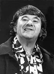 Hackett became known to a wider audience when he appeared on television in the 1950s and '60s as a frequent guest on variety talk shows hosted by Jack Paar and Arthur Godfrey, telling brash, often off-color jokes, and mugging at the camera. Hackett was a frequent guest on both the Jack Paar and the Johnny Carson versions of The Tonight Show. According to the board game Trivial Pursuit, Hackett has the distinction of making the most guest appearances in the history of The Tonight Show Starring Johnny Carson. During this time, he also appeared as a panelist and mystery guest on CBS-TV's What's My Line? and filled in as emcee for the game show Treasure Hunt.[10] He made fifteen guest appearances on NBC-TV's The Perry Como Show between 1955 and 1961.[11] He appeared with his roommate Lenny Bruce on the Patrice Munsel Show (1957-1958), calling their comedy duo the "Not Ready for Prime Time Players,"[3] 20 years before the cast of Saturday Night Live used the same name.