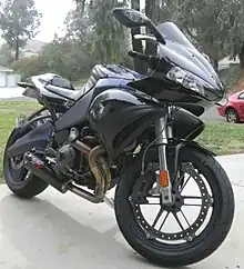 In 2009, Buell announced production of the 1125RR, also a race-only motorcycle.[42] The bike was internally called the B2, aimed for the supersport market.[11] Built from the 1125R, the 1125RR changes include a titanium exhaust, magnesium wheels, full fairings and a chain drive.