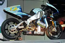 The RW 750 was a development of the Barton Formula One racing motorcycle.[23] Buell bought the parts and tooling from the failed Barton concern and developed the RW 750 for his own use and for sale to private entrants.[24] The engine was a liquid-cooled two-stroke square four.[23][24] Buell's development resulted in a more competitive racer, but production ceased when the AMA discontinued the Formula One class.[23][24]