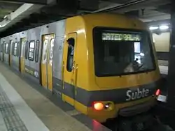 The 100 Series are a series of underground railway cars manufactured by Alstom in Brazil and Argentina for use on the Buenos Aires Underground. They are used on Line D of the network, where they make up the vast majority of the fleet, serving alongside some 300 Series and Fiat-Materfer cars. Since 2019, some units have also been used on the Line E.[1]