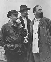 In October 1916, while based in New York City, Bukharin edited the newspaper Novy Mir (New World) with Leon Trotsky and Alexandra Kollontai. When Trotsky arrived in New York in January 1917, Bukharin was the first of the émigrés to greet him. (Trotsky's wife recalled, "with a bear hug and immediately began to tell them about a public library which stayed open late at night and which he proposed to show us at once" dragging the tired Trotskys across town "to admire his great discovery").[4]