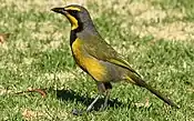 Bushshrikes are small to medium-sized passerines, with short, rounded wings and strong legs and feet. Plumage is typically black, grey, and brown, with some yellow and green. Some bushshrikes have red undersides or red throat-patches.[10]