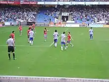 Club Atlético Osasuna (Spanish pronunciation: [ˈkluβ aðˈletiko osaˈsuna], Osasuna Athletic Club), or simply Osasuna, is a Spanish professional football club in Pamplona, Navarre. Founded on 24 October 1920, the club currently plays in La Liga, holding home games at the 23,516-capacity El Sadar Stadium.[4] The team's regular home kit is a red shirt with navy blue shorts. Osasuna is one of four professional La Liga clubs to be owned by its members with an elected president.