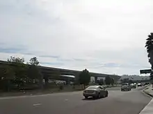 The construction of a "dual freeway" at the western end was scheduled to begin in early 2002, referring to the two carriageways needed for each direction of the freeway. It would require drivers to use the new local lanes to access eastbound SR 56 from I-5 or I-805. The project would allow for trucks to use the new lanes to assist in merging with traffic.[68] The northbound lanes were scheduled to open in February 2006.[69] The southbound I-15 to westbound SR 56 ramp was improved in a construction project in 2005.[70]
