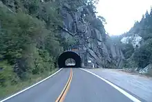 Westbound through the Arch Rock Tunnel, the westernmost of the three