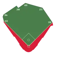 | Field size | Left Field Line – 333 ft (101 m) Straight Away Left – 384 ft (117 m) Left Center – 398 ft (121 m) Deep Left Center – 410 ft (125 m) Center Field – 400 ft (122 m) (Not posted) Right Center – 373 ft (114 m) Right Field Line – 318 ft (97 m) ![]() |