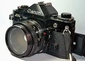 The Canon A-1 is an advanced-level single-lens reflex (SLR) 35 mm film camera for use with interchangeable lenses. It was manufactured by Canon Camera K. K. (today Canon Incorporated) in Japan from April 1978 to 1985. It employs a horizontal cloth-curtain focal-plane shutter with a speed range of 30 to 1/1000 second plus bulb and flash synchronization speed of 1/60 second. It has dimensions of 92 millimetres (3.6 in) height, 141 millimetres (5.6 in) width, 48 millimetres (1.9 in) depth and 620 grams (22 oz) weight. Unlike most SLRs of the time, it was available in only one color; all black. The introductory US list price for the body plus Canon FD 50 mm f/1.4 SSC lens was $625; the camera body was generally sold with a 30–40% discount (roughly $375 to $435).