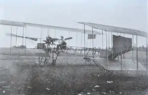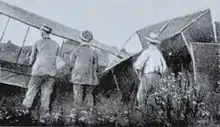 When the final assembly of the aircraft was completed, several days of bad weather conditions prevented the flight trials to be undertaken. On 27 May, however, the weather was fair and Caproni decided to make an attempt to fly the Ca.1. Tabacchi managed to have the aircraft take off at the first attempt; it then flew straight and level for a while, but, when the pilot tried to land the aircraft, his lack of experience caused a violent impact with the ground which heavily damaged the aircraft, even though Tabacchi was unscathed.[16][17][18] The flight was considered a success, and it proved the worthiness of Caproni's first design.[13]