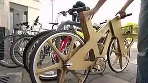 A cardboard bicycle is a bicycle composed mostly of cardboard. Only prototypes have been made as of 2012.[1][2][3] Reported benefits include low cost,[1] and construction from recyclable[3] and renewable materials.[4] The low cost is also expected to act as a theft deterrent.[5][6]