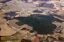 The earliest scientific description of Carolina bays is by Glenn (1895), who used the term 'bay' (which he described as "lake-like expanses") to refer to these features near the town of Darlington, South Carolina.[8] Glenn (1895) put quotation marks around the word "bay" but he did not use the phrase "Carolina bay." A subsequent publication by Melton and Schriever (1933) used the phrase: The Carolina "Bays" (with quotation marks around the word "Bays").[9] Later, MacCarthy (1937) published a paper entitled "The Carolina Bays" and he used this phrase throughout the publication (without quotation marks, and with a capital "B" for the word "Bays").[10]