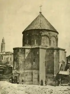 The Cathedral of Kars, also known as the Holy Apostles Church (Armenian: Կարսի Սուրբ Առաքելոց եկեղեցի, Karsi Surb Arakelots' yekeghets'i; Turkish: Aziz Havariler Kilisesi[11] or "Church of the Twelve Apostles" 12 Havariler Kilisesi)[1][9][13] is a former Armenian Apostolic church in Kars, eastern Turkey. Built in the mid-10th century by the Armenian Bagratid King Abas I (r. 928–953), it was converted into a mosque in 1579. In the 19th and early 20th century it was converted into a Russian Orthodox and later Armenian cathedral. In 1993 it was again converted into a mosque and is called Kümbet Mosque[3] (Turkish: Kümbet Camii, literally "domed mosque").[14] It currently comprises part of a larger Islamic complex that includes the Evliya Mosque, the biggest mosque in Kars.[15]