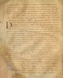 Cathwulf's name is Anglo-Saxon and his letter shows that he received his education in the British Isles. He was probably a churchman, possibly also a courtier. Scholars are divided over whether he should be seen as a monk or a priest. By the time he wrote his letter, he was well-acquainted with recent Frankish history.[3] It is unlikely that Cathwulf sent his letter from England, as has been suggested. His wording indicates that he regarded himself as Charlemagne's subject and "servant" (servulus).[2] Reference to "my Charles" (Carlus mi) and a closing advocation to "read and consider carefully" (lege et intellege diligenter) have been taken to indicate personal closeness to the king, even to suggest for Cathwulf a prior status as the king's tutor.[4]