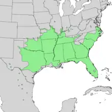 Sugarberry's range extends from the Eastern United States west to Texas and south to northeastern Mexico.[2] It is also found on the island of Bermuda.[4]