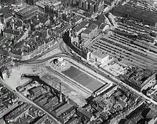 Centenary Square is a public square on the north side of Broad Street in Birmingham, England, named in 1989 to commemorate the centenary of Birmingham achieving city status. The area was an industrial area of small workshops and canal wharves before it was purchased by the council in the 1920s for the creation of a grand civic centre scheme to include museums, council offices, cathedral and opera house. The scheme was abandoned after the arrival of World War II with only the Hall of Memory and half of the planned Baskerville House complete. After the war the scheme was revived in a simpler form however the council never managed to implement the design.