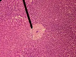 In microanatomy, the central veins of liver (or central venules)[1] are veins found at the center of hepatic lobules (one vein at each lobule center).
