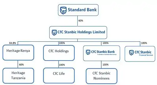 Stanbic Holdings Plc, formerly known as CfC Stanbic Holdings Limited, is a financial services organization in Kenya. The Group's headquarters are located in Nairobi, Kenya, with subsidiaries in Kenya and South Sudan. Stanbic Holdings is a member of the Standard Bank Group, a financial services giant based in South Africa. The institution is licensed and governed by the Central Bank of Kenya, the national banking regulator.