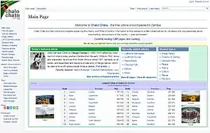 Chalo Chatu translated as our world in the Zambian language is an English-language wiki-based free encyclopaedia project created by Jason Mulikita[6][7] that is dedicated to documenting the Zambia and[8] also try to preserve the history and pride of Zambia covering historical events and current events, notable public figures, companies, organizations, websites, national monuments and other notable key features of Zambia.[9] The site uses MediaWiki software to maintain a user-created database of information. The site's content is under a Creative Commons license(CC BY-SA 3.0) which means that it is available free to the public, but cannot be used for commercial purposes and should not be modified by people who are not part of the community of the website. Chalo Chatu is a work-in-progress, with articles in various stages of completion.[8]