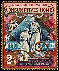 The first semi-postal was actually a postal card; to commemorate the Uniform Penny Post in 1890, the United Kingdom of Great Britain and Ireland issued a card with a face value of one penny, but sold it for sixpence, with the difference given to a fund for postal workers. The first semi-postal stamps were issued in 1897 by the Australian colonies of New South Wales and Victoria, who both marked the Diamond Jubilee of Queen Victoria with stamps denominated in pennies, but sold for shillings, a 12× increase over the face value. Both issues had 1d and 2½d stamps which sold for 1/- and 2/6 respectively. The difference between the nominated value and the selling price was contributed to Hospital Funds. The New South Wales fund was the Consumptives Home established to care for people with tuberculosis. In 1900, the Australian States of Victoria and Queensland issued sets of two stamps to raise funds for those returning from the Boer War and their families.[2]