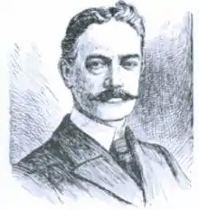 Cornell's first heat was versus the Leander Club crew of London, England, coached by Rudolph C. Lehmann. The members of the Leander Club were composed almost entirely of former Oxford and Cambridge oarsman. They had won the Cup seven times and were the four-time defending champion.[38] Leander was considered the best crew in England, and was the favorite to win the Cup in 1895. The race was a contrast of rowing styles. Cornell rowed the Courtney stroke, which was short and choppy compared to the Leander's long and sweeping stroke.[41] The heat was marred by controversy right from the start. Cornell and Leander crew took up their positions at the starting point. When the umpire asked if the crews were ready, F. D. Colson, the Cornell coxswain, answered "yes".[41] The Leander crew insisted two members shouted "No" and C. W. Kent, the crew's stroke, held up his hand.[42] The umpire insisted that someone from the English crew answered that they were ready and then gave the command to start the race. Both crews shot out from the starting line. Cornell rowed with strong even strokes, but only half of the Leander club was rowing. At that point, Leander stopped rowing, and C. F. Beggs and C. W. Kent, the Leander coxswain and stroke respectively, protested to the umpire. When the umpire did not tell Cornell to stop or return to the start, Cornell continued rowing at a leisurely pace, followed by the referee's boat. Cornell finished the course of one mile (1.6 km) and 550 yards (500 m) in 8 minutes and 11 seconds. This was more than a minute over the time they were rowing in practice. When they crossed the finish line, they were declared the winner of the heat by the umpire.[41] The Leander crew protested the Cornell victory, stating that they notified the umpire before he gave the notice to start the race. They appealed it to the Stewards of the Regatta, who met at the end of the day but they ruled in favor of Cornell victory. They adopted the following resolution: "Resolved, That the committee, while deeply regretting the most unfortunate misunderstand, feel that they must abide by the laws of boat racing and cannot review the decision of the umpire or starter."[41]