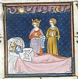Charles, nicknamed "Martel" ("the Hammer") in later chronicles, was a son of Pepin of Herstal and his mistress, possible second wife, Alpaida.[11][12] He had a brother named Childebrand, who later became the Frankish dux (that is, duke) of Burgundy.[13]