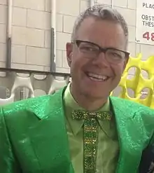 Phoenix has been called the "King of Retro" by the Los Angeles Times, while LA Weekly has given him titles ranging from "King of Kitsch", "Knight of Nostalgia and "Chancellor of Cheese".[33][34] Phoenix himself uses the self-appointed title of "The Ambassador of Americana", while also describing himself as "a man with a particular Pee-wee Herman, Martha Stewart and Huell Howser sensibility".[10] He is particularly noted for his eccentric dress which generally utilizes bright colors and unusual patterns which Phoenix admits "push the edges of good taste" and draw heavily on the stereotypical dress of a used car salesman.[7]