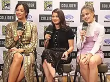 Casting details for Charmed were first revealed by TVLine on February 7, 2018, with the three sisters bearing the unofficial names of Macy, Mel and Madison Pruitt.[21] It also revealed that all ethnicities were being considered for each of the roles and that one of the sisters would be a lesbian, a major change from the original Charmed series where all Halliwell sisters were straight women.[21] TVLine also revealed that casting was underway for the trio's "devilishly handsome" advisor/whitelighter Harry, Macy's "documentary filmmaker-boyfriend" Galvin, Madison's "sensitive loner ex-beau" Brian, and Mel's detective girlfriend Soo Jin.[21] During production, Madison's name was later changed to Maggie, the sisters' family name was changed from Pruitt to Vera, Soo Jin's name was changed to Niko, and Galvin was rewritten as a scientist.[11][71] Former Into the Badlands British actress Madeleine Mantock was cast as the eldest sister Macy, "a practical, driven, and brilliant geneticist".[20] Mantock was cast after Jane the Virgin writer Micah Schraft, who she had worked with on another show five years prior, recommended her to the Charmed producers. Mantock did a Skype interview with the producers because she was in London at the time.[72] In an interview with Teen Vogue, Mantock revealed that she wanted to be part of the show after reading "how funny and smart and conscious" the pilot script was, saying "I thought it was a wonderful way to broach important subjects, be they women's issues or political issues, in a way that's also tied into this wonderful magical fantasy that everybody loves."[13]