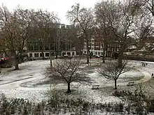 Florin Court, a residential building in the Art Deco style built in 1936 by Guy Morgan and Partners, is on the east side. The building has a concave façade, roof garden and basement swimming pool.[16]