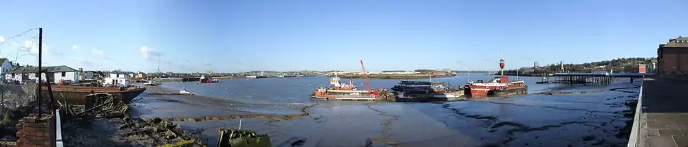 The Medway, apart from Chatham Dockyard, has always had an important role in communication: historically it provided a means for the transport of goods to and from the interior of Kent. Stone, timber and iron from the Weald for shipbuilding and agricultural produce were among the cargoes. Sun Pier in Chatham was one of many such along the river. By 1740, barges of forty tons could navigate as far upstream as Tonbridge.[20] Today its use is confined to tourist traffic; apart from the marina, there are many yacht moorings on the river itself.
