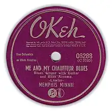 - Me and My Chauffeur (Record listing). Memphis Minnie. Okeh Records. 1941. Front label. 06288.