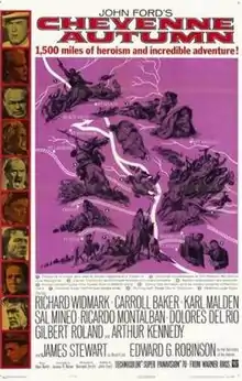 Cheyenne Autumn is a 1964 American epic Western film starring Richard Widmark, Carroll Baker, James Stewart, and Edward G. Robinson. It tells the story of a factual event, the Northern Cheyenne Exodus of 1878–79, told in "Hollywood style" using a great deal of artistic license. The film was the last western directed by John Ford, who proclaimed it an elegy for the Native Americans who had been abused by the U.S. government and misrepresented by many of the director's own films. With a budget of more than $4 million, the film was relatively unsuccessful at the box office and failed to earn a profit for its distributor Warner Bros.[2]