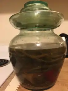 Chinese pickle can be eaten directly from the jar as an appetizer, or used as an ingredient for cooking a larger dish.[6] Before the meal, it is served with wine, beer, sodas, or tea to stimulate people's appetite. People eat the small dishes of Chinese pickles and some snacks to drink and chat.[6] Chinese people can also eat pickles as a dish with steamed rice when they do not have many dishes. Chinese pickles are used as ingredients to cook the food as flavor base.[6] Pickling ginger and pickling pepper are most frequently used ingredients to make Sichuan food. It can also help to flavor and enhance the vegetable, meat, poultry, and seafood. For example, Chinese cook duck soup with pickling radish to make the soup more delicious.