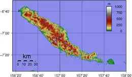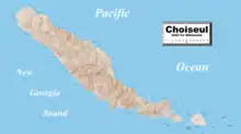 Choiseul Island, native name Lauru,[1] is the largest island (2,971 km2 (1,147 sq mi)) of the Choiseul Province, Solomon Islands, at 7.08°S 157°E. The administrative headquarters of Choiseul Province is situated in the town of Taro, on Taro Island.