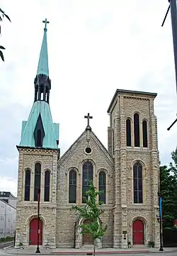 The historic Christ Church Cathedral in Louisville, Kentucky, was founded on May 31, 1822. The original church building was completed in 1824; a new Romanesque Revival facade was added in 1870. The structure was listed on the National Register of Historic Places in 1973.[1]