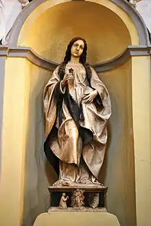 In the Immacolata's chapel there is a painting of the Immaculate, made by Giuseppe Carrera in 1610[5] and restored in 1980. In the same chapel until 1884 there were 34 pictures of saints, which had been added in 1613 thanks to the Confraternity of Immacolata Concezione's brothers, who had their names written on them.[9] In a niche of the chapel there is also the wooden statue of Immaculate Conception, carved in 1695 by Ignazio Ingrassia, a wood-carver from Trapani.[10]