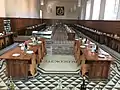 There have been four pipe organs in the church since its founding. The first organ (built by William Trice in 1891) was installed in 1896. It would later be moved to the present location in the Chapel of St. Lawrence located in the Basilica of Saint Paul Outside the Walls. The second organ (built by Klais Orgelbau of Bonn) had been installed in 1911 in the left side aisle. It would later be moved to the present location in the Basilica of Regina degli Apostoli alla Montagnola. In 1952 the third organ (built by Emanuel Kemper of Lübeck) was installed in the central apse when the altar was moved under the arch. In 1966 a further renovation moved the organ from the apse and replaced it with a Celebrant's chair and an area for the concelebrants.[10] This third organ would later be moved to the present location in the Church of San Martino in Campo (Perugia). The present organ by Österreichische Orgelbau was installed in 1967 and renovated by Ditta Mascioni in 1999. It is located on the eastern wall transept above the monastic choir.[11]