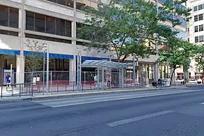 Bulbout (eastbound) Transit Center (westbound) |
