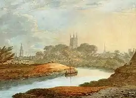 The City's charter was confirmed in 1489 and 1510, and other charters of incorporation were received by Gloucester from Queen Elizabeth I and King James I.[22] Princess Mary visited Gloucester in September 1525 accompanied by her ladies and gentlewomen. She was met by the Mayor, John Rawlins, at Quedgeley.[23] Her father Henry VIII and his then Queen, Anne Boleyn, visited in July 1535.[24] They used Gloucester as a base for hunting trips to Painswick, Coberley, and Miserden. They left Gloucester for Leonard Stanley, on their way to Berkeley Castle.[25]