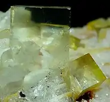 The Clara Pit has given its name to the mineral, claraite and is also the type locality for the following minerals: agardite-(Ce),[2] arsenbrackebuschite,[3] arsenocrandallite,[4] arsenogorceixite,[5] arsenogoyazite,[6] bariopharmacosiderite,[7] benauite,[8] bismutostibiconite,[9] claraite,[10] cualstibite,[11] phosphofibrite,[12] phyllotungstite,[13] rankachite,[14] rhabdophane-(Ce),[15] tungstibite,[16] uranotungstite.[17]