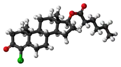 Clostebol caproate (brand name Macrobin-Depot), also known as clostebol hexanoate or chlorotestosterone caproate (JAN), as well as 4-chlorotestosterone 17β-caproate or as 4-chloroandrost-4-en-17β-ol-3-one 17β-caproate, is a synthetic, injected anabolic-androgenic steroid (AAS) and a derivative of testosterone.[1][2] It is an androgen ester – specifically, the C17β caproate ester of clostebol (4-chlorotestosterone) – and acts as a prodrug of clostebol in the body.[1] Clostebol acetate is administered via intramuscular injection.[2]