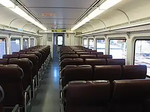 The interiors of the trains have significant differences from previous Comet railcars, featuring redesigned seats and windows that are larger than previous Comet coaches.[2] There are also new LED digital information displays along with slightly more seating.[1] Major external differences include a stainless-steel exterior and visible, roof-mounted air conditioning units.