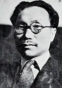 In the days following Japan's surrender on 14 August 1945, several communist organisations were created.[3] The first notable attempt was established on either 15, 16 or 17 August, and a public declaration was released on 18 August by the "Seoul District of the Communist Party of Korea".[4] This group would go down in history as the Changan group, and its leading figures were Choe Ik-han, Yi Yong, Cho Tong-ho and Hyon Chun-hyok.[5] An invitation to join the Central Committee of the Changan group was sent to Pak Hon-yong, but the invitation was declined on 19 August.[5] He instead opted to form the Preparatory Committee for the Reconstruction of the Communist Party of Korea (PCR–CPK) and called for the dissolution of the Changan group.[5] The PCR–CPK supported the theory of two-stage revolution, the idea that Korea had to undergo a bourgeoisie democratic revolution before starting a socialist one.[6] Moreover, the PCR–CPK sought to form a people's front under the leadership of the Communist Party of Korea (CPK) to seize power.[6]