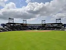 The ballpark incorporates several familiar facets from other Grapefruit League facilities.[15] The clubhouse behind the right field fence is reminiscent of Charlotte Sports Park.[15] An outfield grandstand is similar to Bradenton's LECOM Park.[15] The berm in left field is common to many spring training facilities.[15] The ballpark has a left-field tiki bar, as does the Phillies' Spectrum Field in Clearwater.[15]
