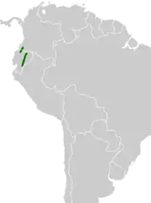 It is found in southwestern Colombia and northwestern Ecuador. Until 2016, it was considered a subspecies of the Lesser Elaenia.[2] Its natural habitats are dry savanna, subtropical or tropical dry shrubland, subtropical or tropical seasonally wet or flooded lowland grassland, and heavily degraded former forest.