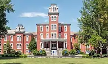 Cottey is situated on 66 acres (26.7 ha) of land in Nevada, Missouri, the Vernon County seat and a rural town of 8,198 people (by the 2020 estimate). The main campus occupies 11 city blocks.[3] Five blocks south is B.I.L. Hill, a private lodge that rests above a public park which includes a walking trail, gazebo, and small lake. BIL Hill is used by Cottey students, faculty, and staff for recreation, concerts, bonfires, picnics, suite nights, and other traditions.