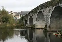 The main rivers in County Kilkenny, called the Three Sisters, are the Nore, Barrow and Suir.[8] The River Nore bisects the county and flows through Ballyragget, Kilkenny City and the villages of Bennettsbridge, Thomastown and Inistioge. The River Suir forms the border between County Waterford and County Kilkenny. River Barrow forms a boundary to the east of the county.