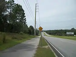 Just as it approaches a series of medical offices, the road curves to the northwest and then at the County Department of Mosquito Control office, curves to the northeast, where it will stay through much of the county. The road widens once again and this time turns into a divided highwaybefore it approaches CR 486, also known as West Norvelle Bryant Highway. North of CR 486, Lecanto Highway passes by a Veterans Administration center that was once part of the notorious Brown School[10] The road intersects the gateway to Black Diamond, and later passes along the northwestern edge of Beverly Hills. The first major intersection in this community is at West Roosevelt Boulevard and North Modelwood Drive, the former of which is the first gateway through Beverly Hills. The road remains a four-lane divided highway even as it approaches Pine Ridge at West Pine Ridge Boulevard. The divided highway ends as the road begins to narrow, but not before intersecting the northern terminus of a second Beverly Hill gateway known as Forest Ridge Boulevard. After this, CR 491 finally enters Pine Ridge itself. Throughout the community, the route remains two lanes wide with occasional provisions for left turn lanes, and has a noticeable right-of-way for a potential widening. The road curves slightly to the east before it approaches the south end of North Lecanto Highway, a gateway road to Citrus Springs, then approaches the Sandy Oaks RV Resort near the power line ROW leading from the former Crystal River 3 Nuclear Power Plant, and after this the gateway to Central Ridge District Park,[11] before the road turns straight east and enters Holder, where it passes the Withlacoochee State Trail trailheads two blocks before intersecting US 41, which up until the Autumn of 2010 was a blinker-light intersection that was replaced as a normal signalized intersection. East of US 41, Lecanto Highway passes a series of dead end streets, including the entrance to the Quail Run community, and a ranch on the south side before approaching another trailhead within the Two-Mile Prairie Tract of the Withlacoochee State Forest at a former Seaboard Air Line Railroad line. The road takes a slight curve before approaching the same power lines it crossed west of Holder, and returns to the northeast once again. Between a dirt road named North Clark Point, and a private road named Twelve Oaks Place which leads to a private airport community,[12] the road runs along a raised embankment over a dry lakebed. Citrus County Road 491 finally ends at SR 200 in Stoke's Ferry just south of the eastern terminus of the northern segment of Citrus County Road 39.