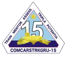 Carrier Strike Group 15, (CSG-15 or CARSTRKGRU 15, and sometimes spelled out, viz. "Fifteen") is a training formation of the United States Navy. It trains and certifies Pacific Fleet Carrier Strike Groups, Amphibious Ready Groups, and independently deploying surface ships. It replaced Commander, Strike Force Training Pacific in a title change. Carrier Strike Group Four is the equivalent command for US Fleet Forces (Atlantic Fleet) ships.